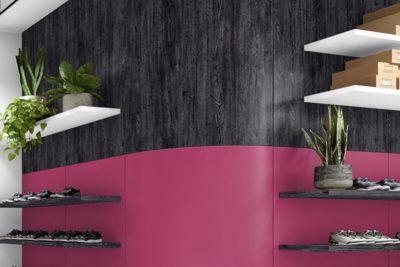 Если в рисунке более простой репродукции «Дуб Галифакс» присутствуют трещины черного или темного оттенка, то у представленного здесь образца — глазурованного варианта – мы видим светлые трещины и поры. Таким образом, создан, можно сказать, полностью новый декор. А с наличием в нем черного оттенка данный декор приобретает вид сгоревшей древесины. За счет своего черно-белого характера этот декор, например при применении его на рабочих поверхностях мебели, будет хорошо сочетаться с фасадами, выполненными как в черных, так и очень светлых серых оттенках.