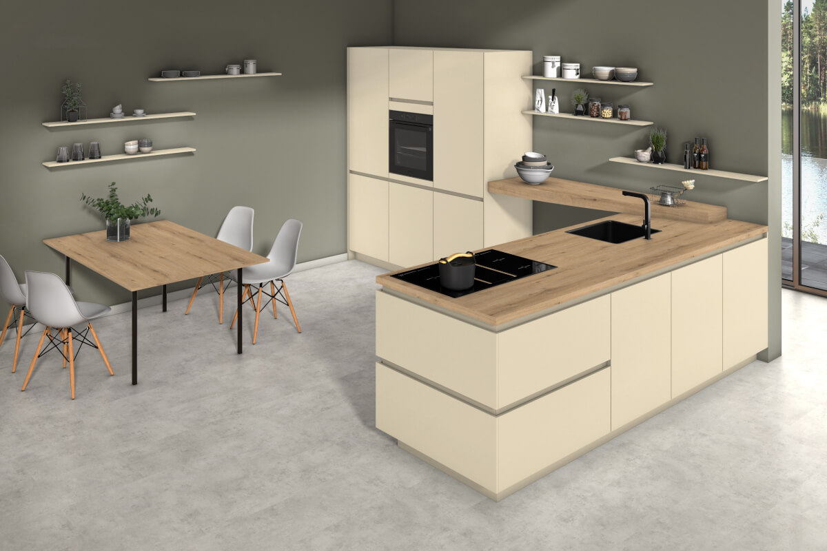 Карат бежевый U115 ST9 /2,80 х 2,07 х 16мм /ЭГГЕР — теплый оттенок бежевого, усиливающий ощущение уюта в интерьере. Такой декор подойдет для оформления спален, гостиных и детских, будет уместен в офисах и ресторанах. Отливы теплого серого цвета позволяют комбинировать плиту с черным цветом, а также с однотонными декорами теплой цветовой палитры. Структура ST9 придает мягкую бархатистость на ощупь.