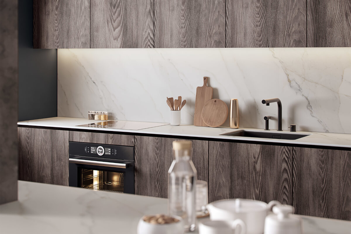 Каштан Арвадонна Норка К533 AD /2,80 х 2,07 х 16мм /Кроношпан демонстрирует выразительную текстуру древесины в серых и темно-коричневых оттенках. Четкий рисунок с выраженными разводами и кольцами и финиш с едва выраженным глянцем придают декору аутентичный вид. Это идеальное решение для дизайна элитной мебели, способной дополнить интерьер в жилых и коммерческих помещениях.