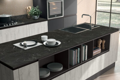 Компакт-плита 6333/NV Обсидиан Венетто 3050х1220х12 от производителя «Кедр» идеально подходит для изготовления столешниц. Многослойная цельноламинированная плита характеризуется высокой прочностью, устойчива к механическим и термическим воздействиям, не боится бытовой химии. Высокая гигиеничность и экологическая безопасность материала важны для использования в зоне приготовления пищи.