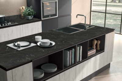 Компакт-плита 6333/NV Обсидиан Венетто 3050х605х4 мм от производителя «Кедр» идеально подходит для изготовления стеновых панелей. Многослойная цельноламинированная плита характеризуется высокой прочностью, устойчива к механическим и термическим воздействиям, не боится бытовой химии. Высокая гигиеничность и экологическая безопасность материала важны для использования в зоне приготовления пищи.