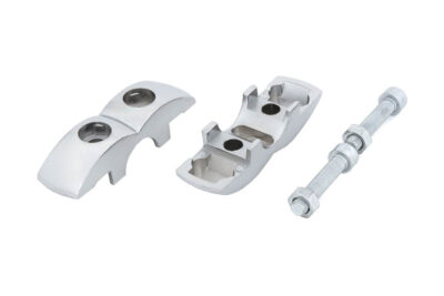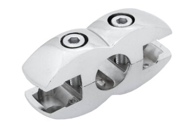 Двусторонний держатель панелей и стекла применяется для крепления к стойкам двух вертикальных панелей, толщиной не более 20 мм (без использования уплотнителей). Рекомендуется использовать панели одинаковой толщины, так как при разной толщине панелей держатель не зажмет трубу, и может сползать.