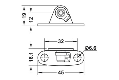 Крепление к фасаду из древесины. Материал: сталь. Поверхность / цвет: никелированный. Монтаж на стороне откидной двери. Путем привинчивания шурупами для ДСП с диаметром резьбы 3,5 мм.