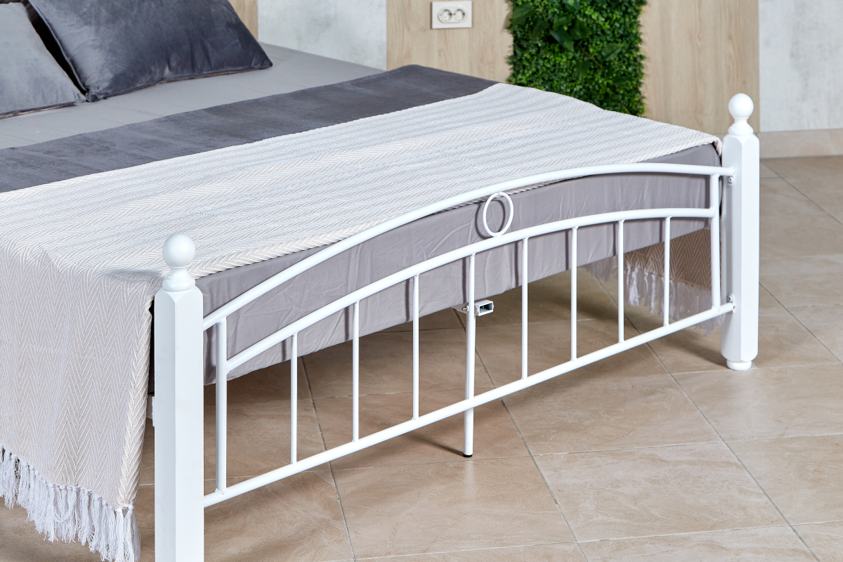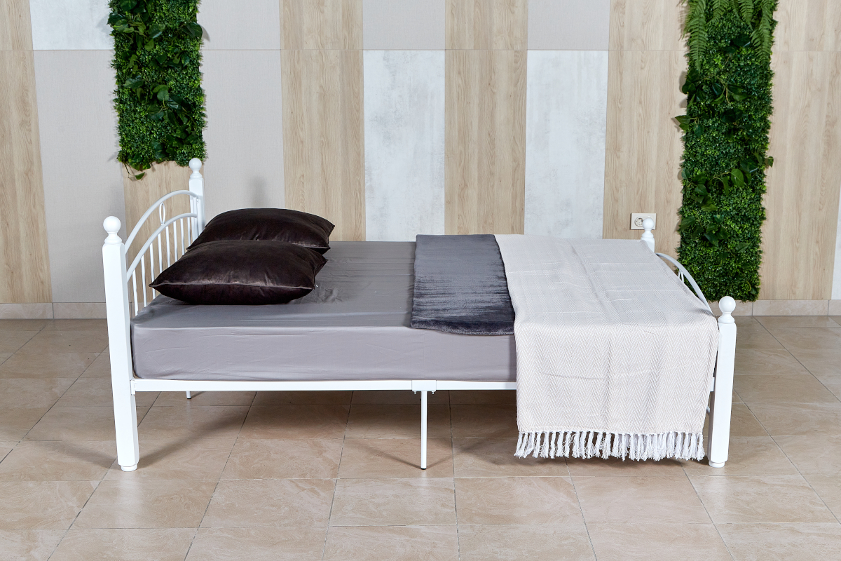 Кровать «Планета Лофт» белая с деревянными ножками (бук) 1200х2000