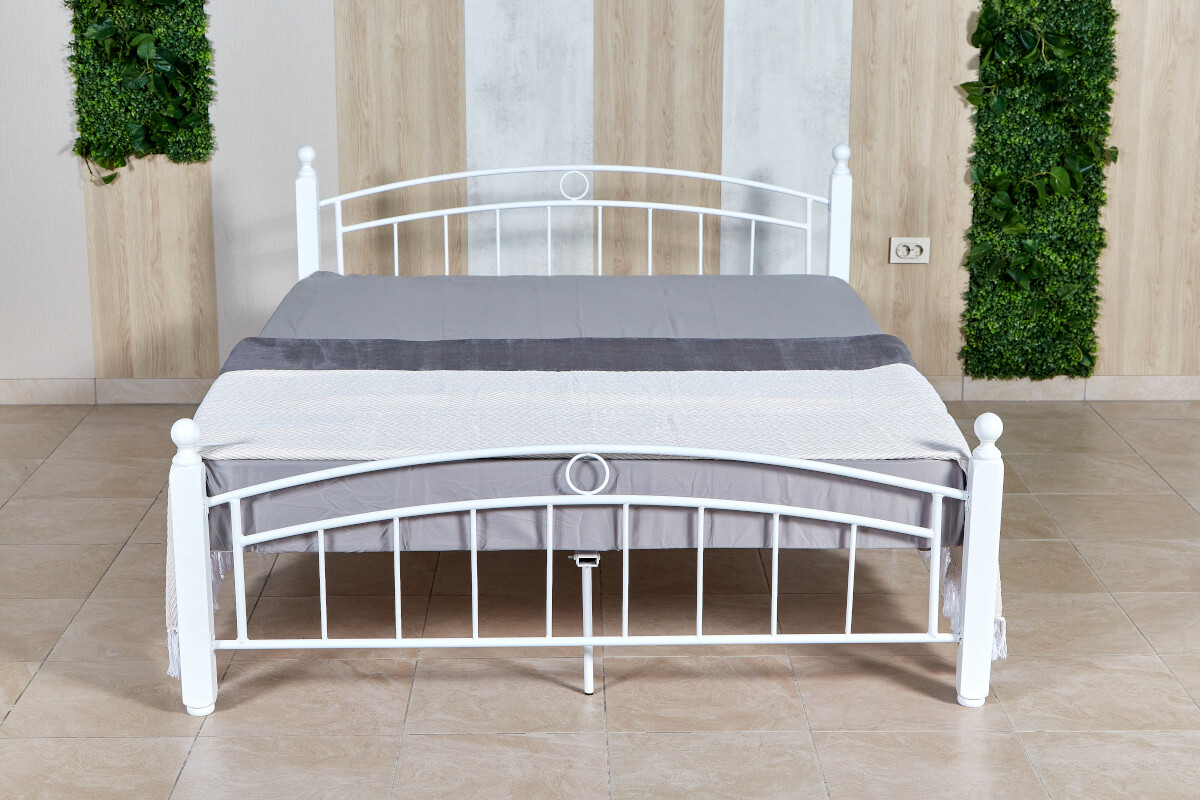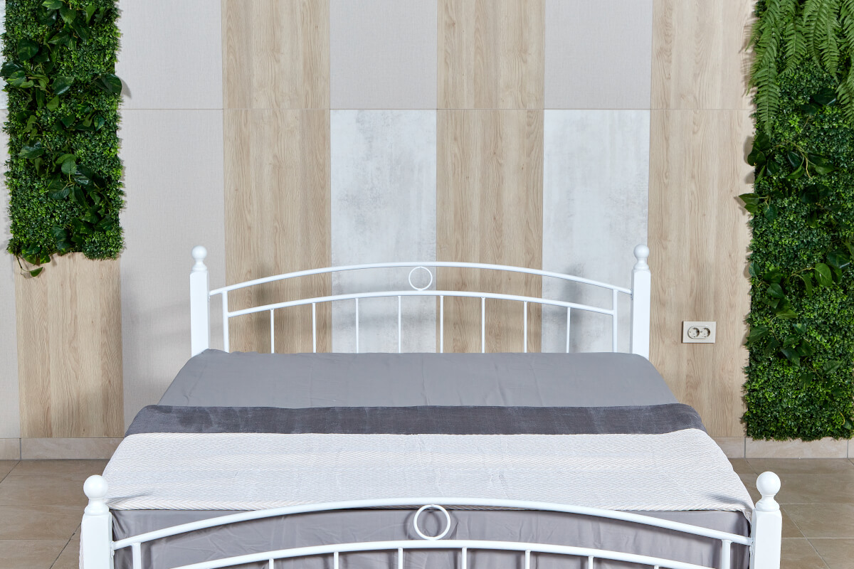 Кровать «Планета Лофт» белая с деревянными ножками (бук) 900х2000