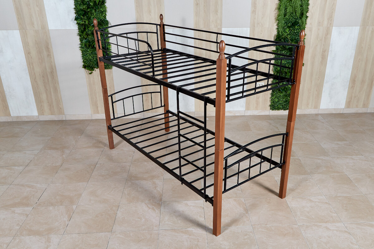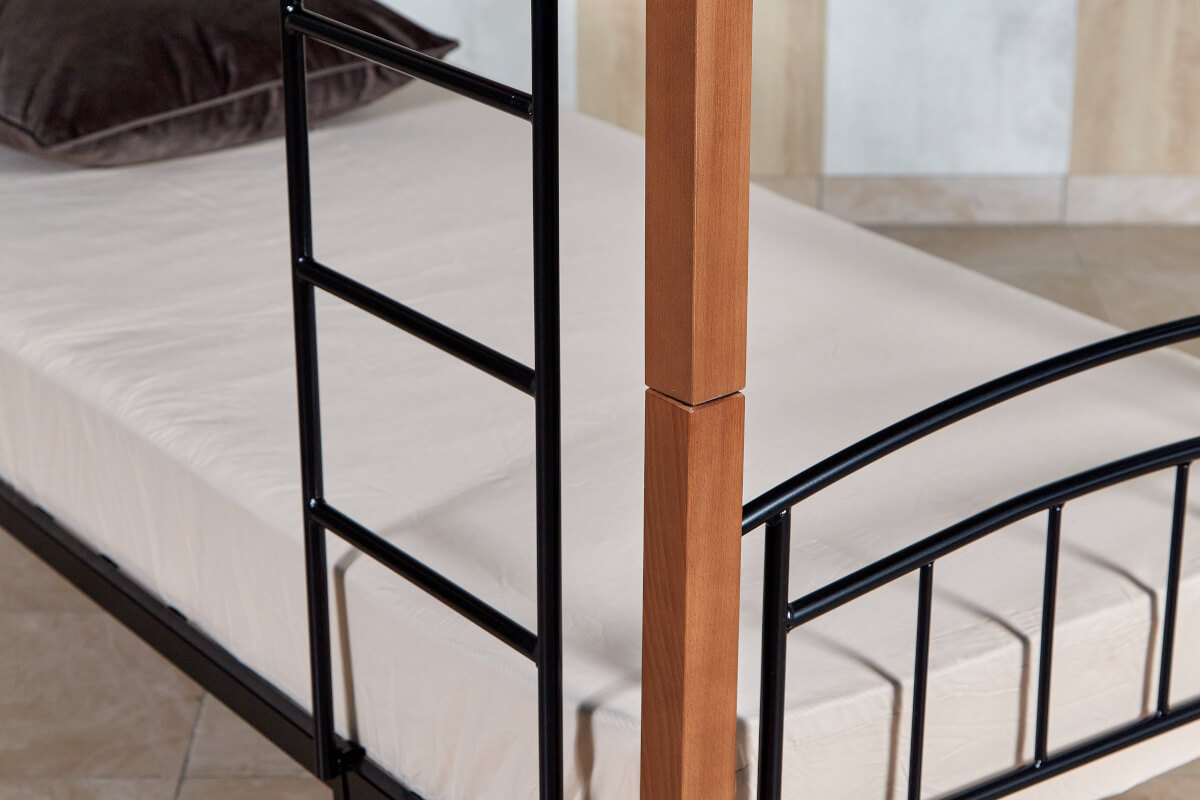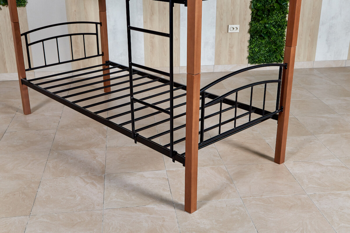 Кровать «Планета Лофт» двухъярусная черная с деревянными ножками (бук) 900х2000