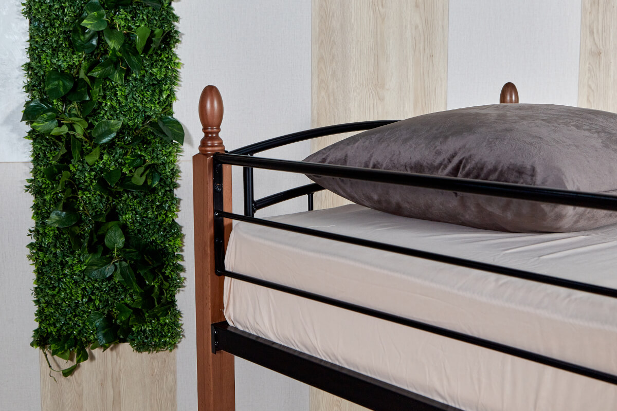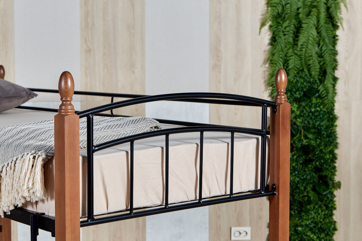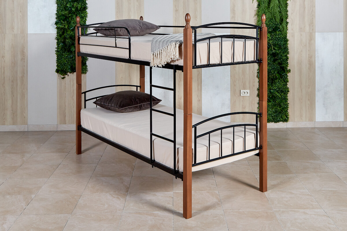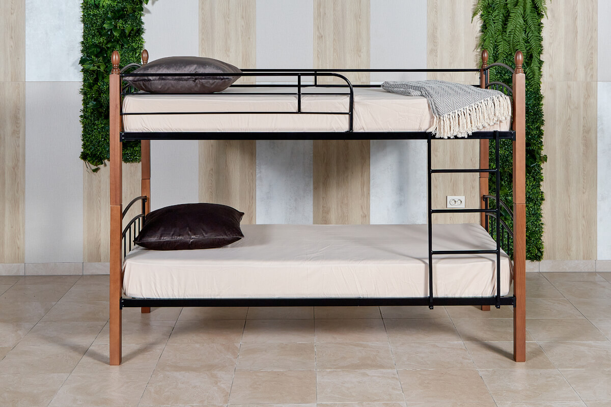 Кровать «Планета Лофт» двухъярусная черная с деревянными ножками (бук) 900х2000