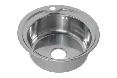 Кухонная мойка имеет классическую круглую форму и одну вместительную чашу с широкими бортиками и площадкой для монтажа смесителя. Мойка изготовлена из высококачественной нержавеющей стали, поверхность глянцевая.