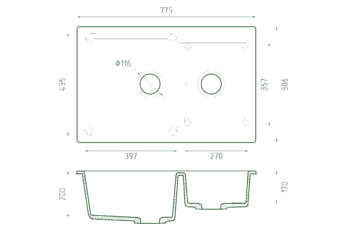 Мойка мрамор PRACTIC GF-P-780K 2 чаши 780х510 мм белый (с сифоном)
