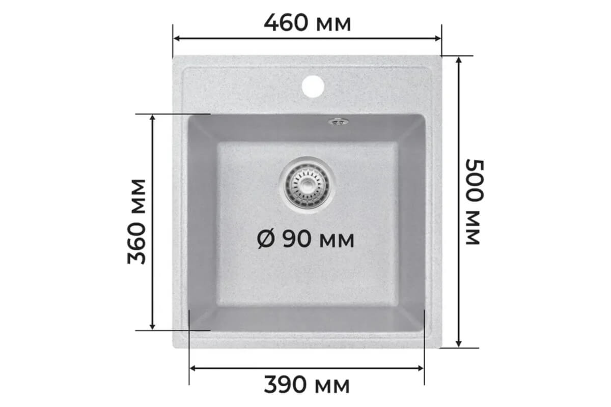 Мойка мрамор GR-460 чаша 460х500х190мм светло-серый (с сифоном) арт 460-310