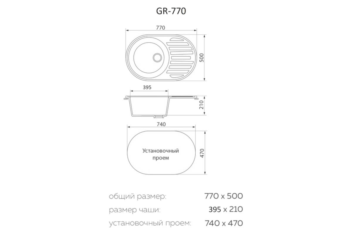 Мойка мрамор GR-770 чаша с крылом 770х500х200мм светло-серый (с сифоном) арт 770-310