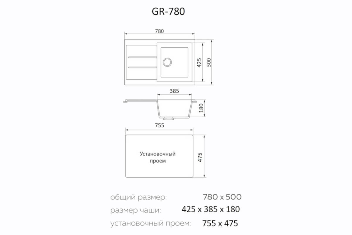Мойка мрамор GR-780 чаша с крылом 780х500х180мм бежевый (с сифоном) арт 780-328