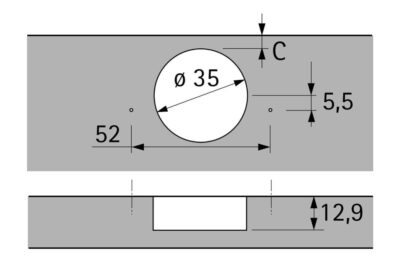 Легкое, равномерное и бесшумное закрывание дверей обеспечит интегрированный демпфер Silent System. Эта петля используется для открывания мебельных фасадов толщиной от 15 до 24 мм — в случае, если фасад накладывается на боковину корпуса. Гарантировано автоматическое притягивание фасада к корпусу при закрывании, от угла 35°. Чашка петли по глубине составляет 12,8 мм, диаметр — 35 мм, крепится на саморезы 3,5 х 13 мм.