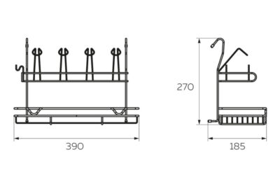 Полку можно повесить прямо возле мойки на рейлинг. Есть длинные крючки, благодаря которым полка жестко фиксируется, а ее удобные и надежные бортики не дают посуде упасть вниз. Конструкция полки – решетчатая прозрачная, все видно, что лежит. Это помогает быстро достать необходимый прибор или бокал.