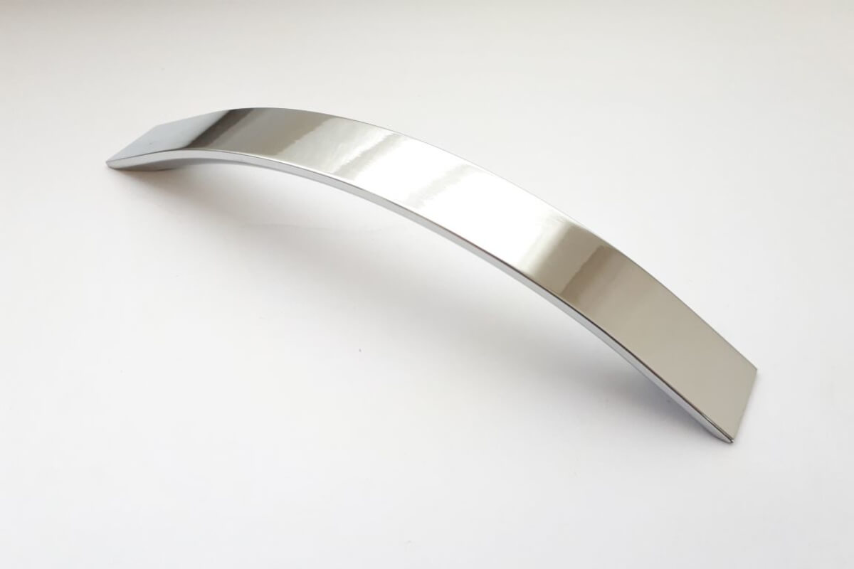 Все хромированные оттенки – это светлые тона с частичками серебра. Поэтому их применяют для модерна. Также используют при оформлении интерьера в стиле хай-тек, которому присущи новшества и технологии. Ручка 4391 F/128 хром (K) выполнена как раз в цвете хром. Имеет удобный для хвата рукой изгиб и эргономичную форму.