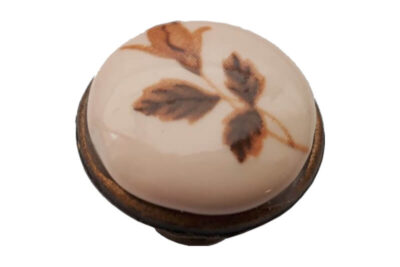 Перед нами ручка-кнопка в цвете бронза с керамической вставкой «бежевый цветок». Отлично впишется в стиль прованс. Ручка очень аккуратная, миниатюрная, но вместе с тем прочная и надежная. Отлично справится со всеми своими функциональными обязанностями.