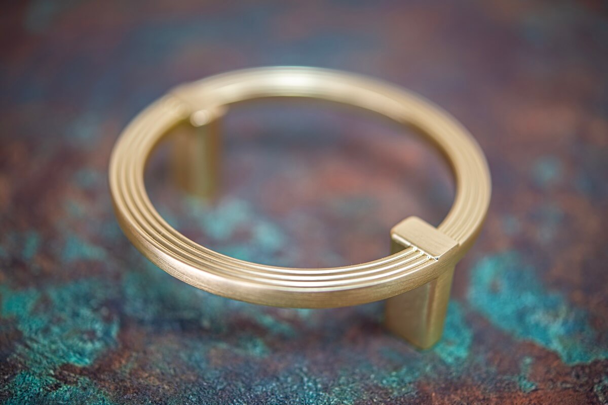 Ручка-скоба LS2470- 64/82 брашированное золото станет элегантным дополнением мебели для спальни, гостиной, кухни или прихожей. Круглая ручка для мебели имеет диаметр 82 мм. Межцентровое расстояние составляет 64 мм. Материал изготовления — цамак. Декор под золото универсален и подходит для светлой и темной мебели, добавляя в интерьер современный шик.