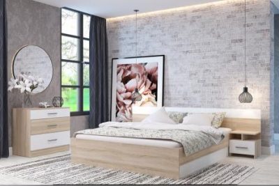 Перед нами красивая мебель, со скромным, но очень элегантным декором. Прямые линии и минималистский стиль данной модели отлично подойдут для комнаты с лаконичным дизайном. Ламинированная ДСП двух контрастных цветов Кантербери/Сонома, из которых выполнена спальня, произведены на высокотехнологичном оборудовании и отвечают всем нормам безопасности.