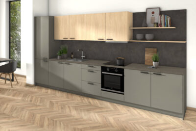 Стеновая панель F031 ST78/ F187 ST9 8мм/4100мм/640мм (Эггер) – современный отделочный материал, используемый при оформлении кухонных фартуков или декорировании пространства. Двусторонняя панель выполнена в двух выразительных декорах серой гаммы. Одна сторона представляет спокойную репродукцию камня Гранит Кашиа светло-серый, вторая — репродукцию бетона в темно-сером цвете. Декоры комбинируются между собой и с другими оттенками, открывая множество вариантов для дизайна интерьера.