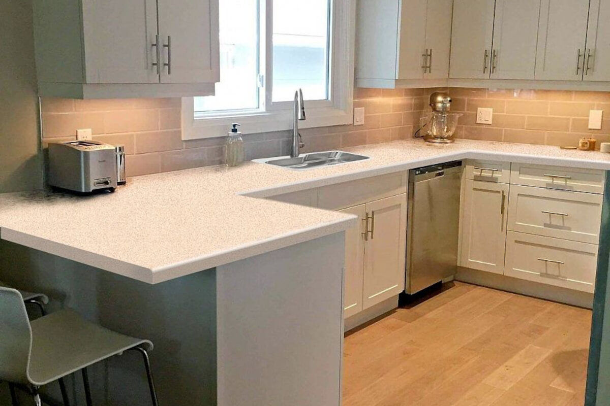 Столешница, выполненная в декоре Семолина Бежевая, установленная на вашей кухне, будет радовать ваших гостей домашней уютной атмосферой, создаваемой за счет мягких цветовых оттенков.