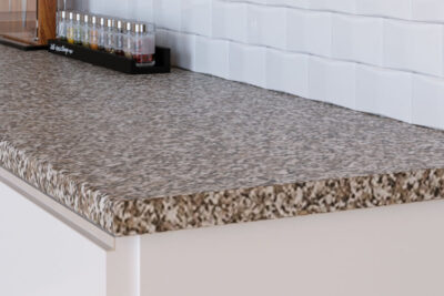 Вы получите кухню с универсальным покрытием столешницы, обратившись к возможностям нашего интернет-магазина. Здесь вы можете выбрать влагостойкую столешницу толщиной 38 мм, для производства которой используется влагостойкое ДСП. Сверху столешница покрыта высококачественным пластиком CPL 0,5 мм, имеет высокую термическую устойчивость, выдерживает 40-150 оборотов Тайбера. Поверхность не выгорает на солнце, устойчива к механическому воздействию, пищевым кислотам и чернилам.