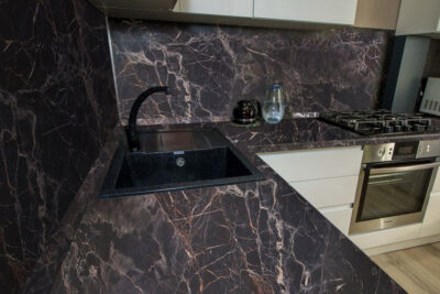 Столешница влагостойкая Мрамор марквина черный (3029 S) 38мм/3.05м произведена на основе влагостойкой ДСП 38 мм и облицована декоративным бумажно-слоистым пластиком. Столешница 38 мм отличается высокой прочностью, устойчивостью к механическим повреждениям и бытовой химии. Столешница «Кедр» проста в уходе и надолго сохраняет эффектный вид. Данная модель выполнена в имитации черного мрамора и составит изысканный ансамбль с кухонным гарнитуром с светлых тонах.