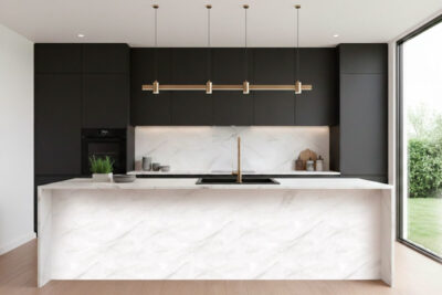 Столешница влагостойкая (4924 PT) 38мм/3,05м 1U Коста Рей выполнена в светлом нейтральном декоре — репродукции премиального мрамора. На молочно-белом фоне видны акварельные разводы и прожилки в теплом светло-сером цвете. «Коста Рей» — нежный и свежий декор, который благодаря нейтральному характеру и спокойной цветовой гамме органично комбинируется с репродукциями дерева и однотонными панелями.