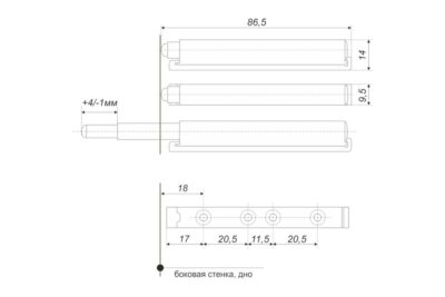 Данный толкатель оснащен регулируемым механизмом и магнитом. Чтобы не портить внешний вид мебели, толкатель имеет скрытое крепление. Механизм позволяет пользователю осуществлять легкое открытие/закрытие фасадов, на которых нет ручек.