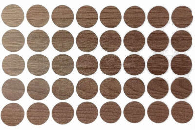 Толщина заглушки до 0,3мм, что делает ее менее заметной на поверхности мебели по сравнению с обыкновенными пластмассовыми заглушками.
